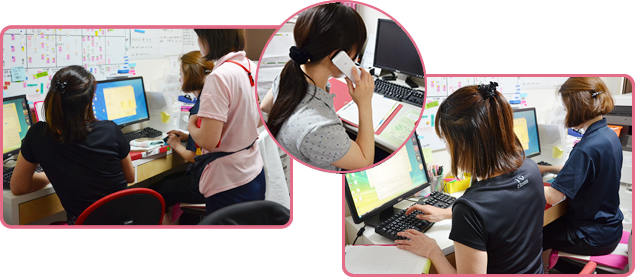 訪問前はステーションで情報収集。スタッフ同士の今日の訪問確認を行います。